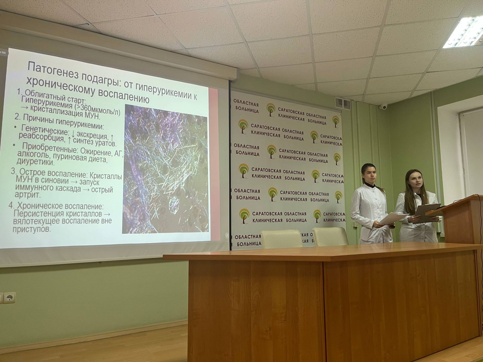 Доклад «Тяжелая нелеченая подагра – смертельное заболевание?» представили Киселева Мария Андреевна и Горбенко Екатерина Сергеевна, студенты 6 курса, 13 группы (руководитель - доцент Магдеева Н.А.);